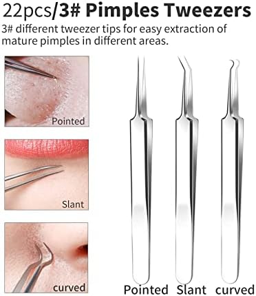 2024 Professional Pimple Popper Tool Kit – 22 PCS Blackhead Remover Tools for Acne and Zit Popping Comedone Extractor with Magnifying Glass and Alcohol Pad