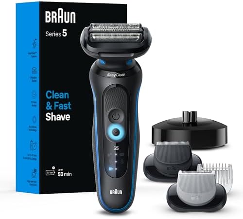 Braun Electric Shaver for Men, Series 5 5150cs, Wet & Dry Shave, Turbo Shaving Mode, Foil Shaver, with Beard Trimmer, Body Groomer and Charging Stand, Blue