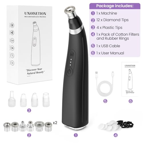 𝗥𝗲𝘃𝗶𝘁𝗮𝗹𝗶𝘇𝗲 𝗬𝗼𝘂𝗿 𝗦𝗸𝗶𝗻’𝘀 𝗬𝗼𝘂𝘁𝗵𝗳𝘂𝗹 𝗚𝗹𝗼𝘄: Note:Charge only with a 5V 1A or 5V 2A adapter.If you are looking for how to have smooth, healthy-looking skin, UNOISETION home microdermabrasion machine is definitely a good option for you. It uses a diamond tip to gently exfoliation the skin, safely and gently removing dead skin, blemishes, and pigmentation. It restores your skin’s natural glow and feels buttery soft.