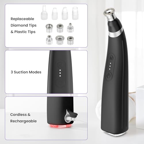 Diamond Microdermabrasion Machine, Handheld Facial Dermabrasion Device, Portable Microdermabrasion Tool with 12 Diamond Tips, Blackhead Removal for Home Travel