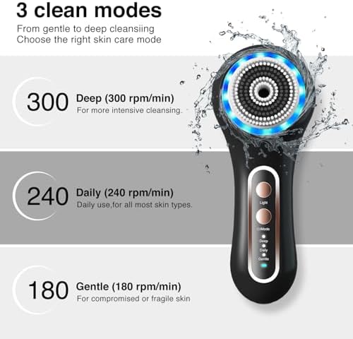 THE PERFECT TRIPLE BENEFIT SKIN SPA SYSTEM: Rotating face scrubber brush with advanced technology delivers superior cleansing on hard-to-remove makeup ,Gentle enough for daily use on even the most sensitive skin.This electric face scrubber suitable for all skin types and meet all your facial cleansing needs.