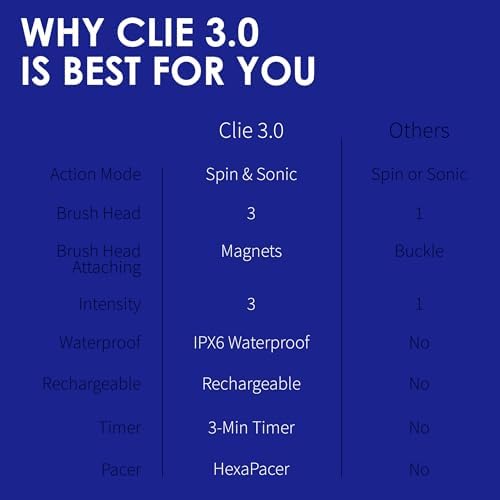 Spinning & Pulsation Tech – Spin tech lets face wash brush rotates brush head automatically which mimic the way of washing face with hands to effectively cleanse oil, blackheads, dead skins and more. While Pulsation Tech with 15000 pulsations per minute, channeled by crafted gentle bristles, to thoroughly and deeply remove oil, dirt, dead skins and more, leave skin cleaner and brighter without any hurt. Clie 3.0 is the first facial scrubber that embeds both spinning and pulsating technologies.