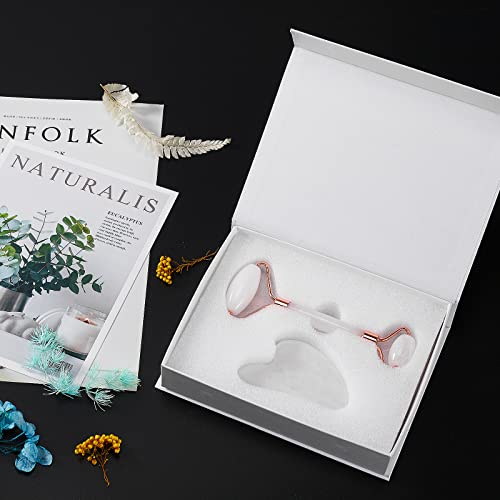 Jade Roller for Face, Facial Roller Massager Skin Care Tool, Gua Sha Facial Tools for Face, Neck, Eyes, Reduce Puffiness of The Skin – White