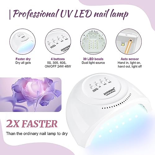 JODSONE 60 PCS Gel Nail Polish Kit with U V Light Base and Matte Glossy Top Coat Nail Gel Polish Soak off Manicure Accessory Tools Suitable for All Seasons