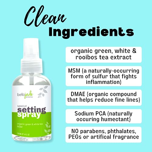 Makeup Setting Spray for Face – Long Lasting Mist: Hydrating Dewey Finishing + Organic Green Tea & MSM – All Skin Types – Large 4 oz Bottle