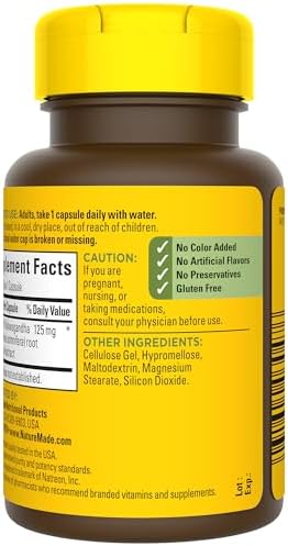 Nature Made Ashwagandha Capsules 125mg for Stress Support, 60 Capsules, 60 Day Supply