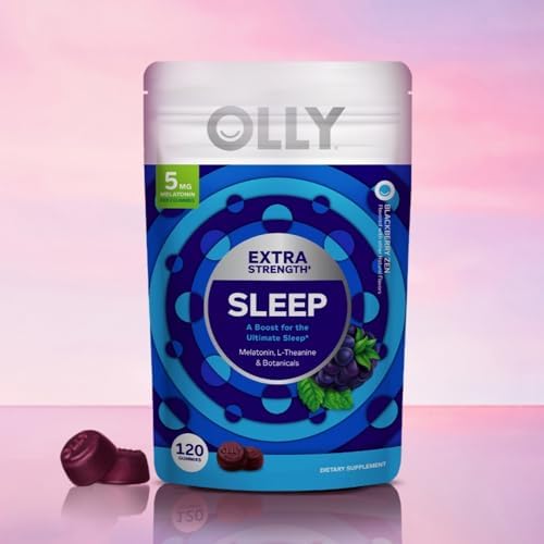 OLLY Extra Strength Sleep Gummy, Occasional Sleep Support, 5 mg Melatonin, L-Theanine, Chamomile, Lemon Balm Extracts, Sleep Aid, BlackBerry Flavor – 120 Count (Packaging May Vary)