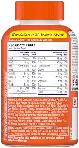 Specially designed for women, One A Day Womens Complete Multivitamin is 40% smaller** for simple daily dosing. One A Day Womens Complete Multivitamin contains essential nutrients such as Vitamin A, Vitamin C, Vitamin D, Vitamin E, Biotin and Zinc, as well as Vitamin B6, Vitamin B12, Pantothenic Acid, Folate, Riboflavin, Niacin and Thiamin. From the #1 multivitamin brand specially designed for women, One A Day Womens Complete Multivitamin contains at least 100% Daily Value of 14 essential nutrients for your wellness support*. Taking one multivitamin every day with food provides key nutrients to support:* Heart Health†, Healthy Energy Metabolism‡, Healthy Muscle Function as well as Immune, Skin, Bone and Eye Health. Our multivitamin for women is free of High Fructose Corn Syrup, Fish/Crustacean Shellfish Allergens and Artificial Flavors and Sweeteners. One A Day Womens Complete Multivitamin is a simple way to get nutritional support you may need. †Not a replacement for heart medications ‡ With B vitamins to help convert food to fuel **Compared to previous One A Day Women’s Complete Multivitamin Tablet *This statement has not been evaluated by the Food and Drug Administration. This product is not intended to diagnose, treat, cure, or prevent any disease.