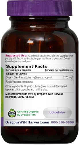 Oregon’s Wild Harvest Certified Organic Saw Palmetto Capsules, Non-GMO, 1170 mg, 90 Count