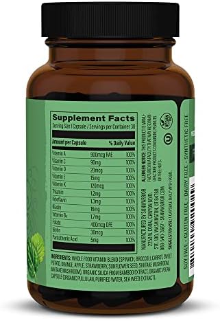 Multi V provides vitamins sourced from real, whole fruits like apples, oranges, and strawberries; from vegetables like spinach, broccoli, carrot, and sweet potato; and from seeds and mushrooms like Sunflower seeds, maitake, and shiitake. Multi-V provides 100% RDA A, C, D, E, K, B6 and more from real, whole produce.