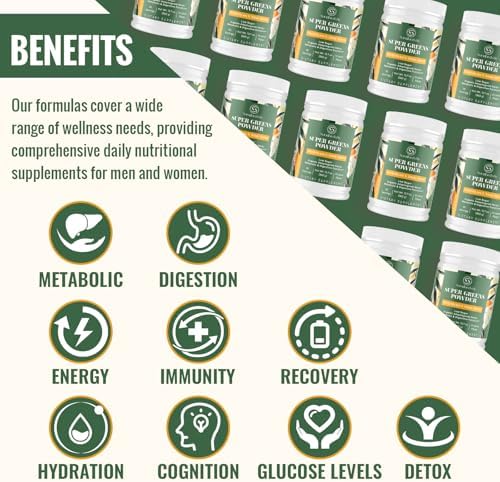 Be the first to review “Super Greens Powder Superfood Supplement + Electrolytes & Tonic Herbs | Organic Greens, Adaptogens, Shilajit, Antioxidants, Preobiotic & Probiotic & Postbiotic | for Gut, Energy & Immune | 30 Servings”