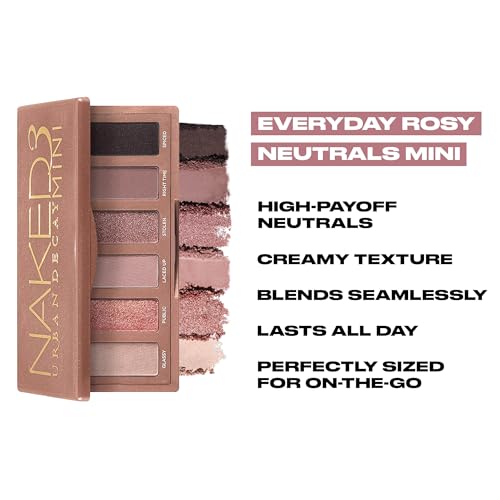 URBAN DECAY Naked 3 Mini Eyeshadow Palette, Soft Pink Neutral Eye Makeup, Matte & Shimmer Finish, 6 Rosy Nude Eye Shadows, Natural Everyday to Smokey Eye, Travel Friendly Size, Vegan, Cruelty-free