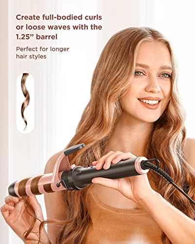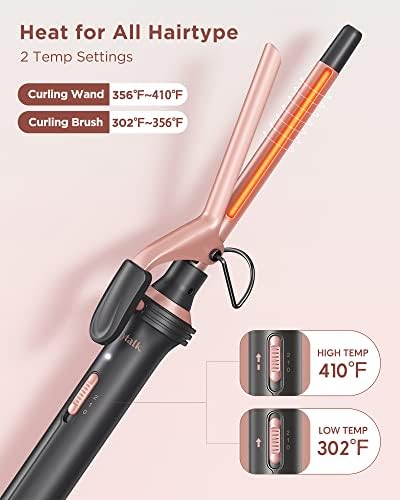 Instant Heating & 2 Temp Settings: This hair curling iron adopts Ptc heat technology, so it can heat up in 30-sec for instant styling, saving your precious time (curling wand: 392-410℉ , curling brush: 356℉). The Ceramic coating makes the barrel smoother without pulling on the hair and helps you get frizz-free & shiny curls lasting all day long