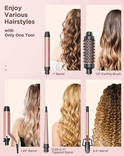 Wavytalk 5 in 1 Curling Iron Set with Curling Brush and 4 Interchangeable Ceramic Curling Wand (0.35″-1.25”), Instant Heat Up, Dual Voltage Hair Curler